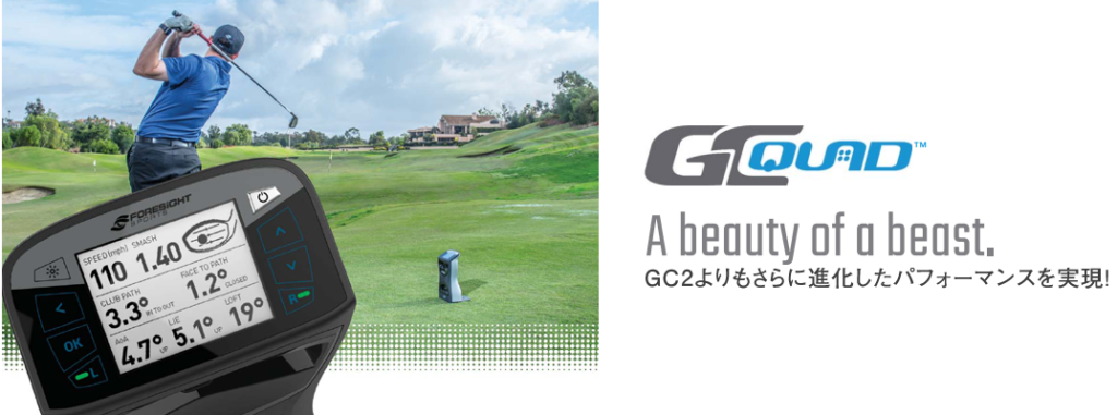 GC Quad(ジーシークアッド)とは、高精度なゴルフ弾道計測器の1つで、現在最高峰の性能を誇っています。GC Quadは、ボールの飛距離やスピン量、打球角度、打点、クラブの速度など、様々なデータを高精度に計測することができます。また、打った瞬間からデータを測定することができるため、瞬時の弾道を計測することが可能です。